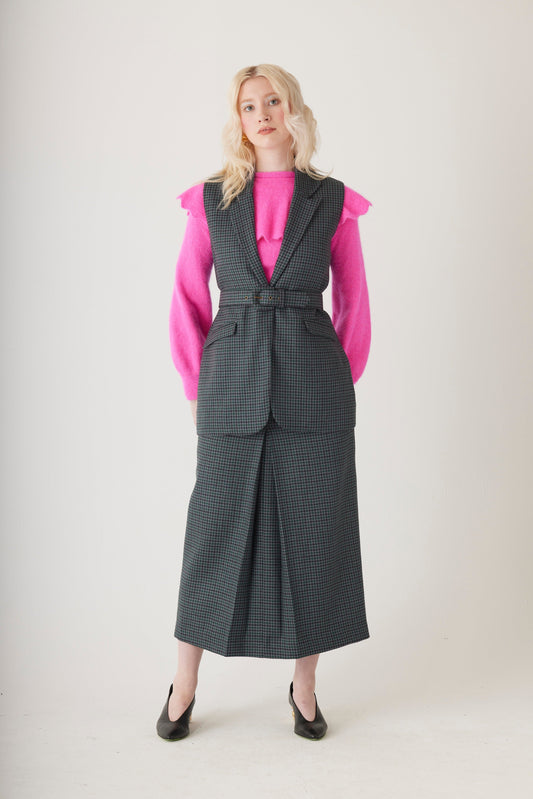 Candice Vest in Evergreen Houndstooth Wool