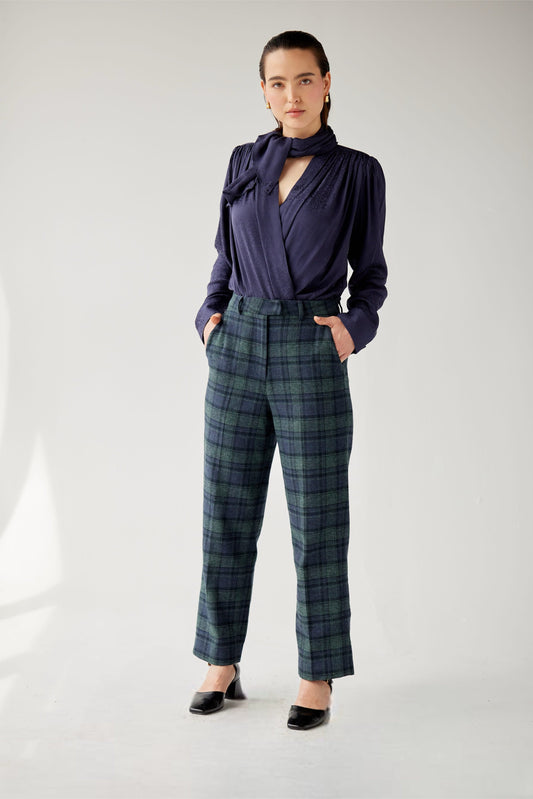 Sophia Pant in Sky Plaid Tropical Wool